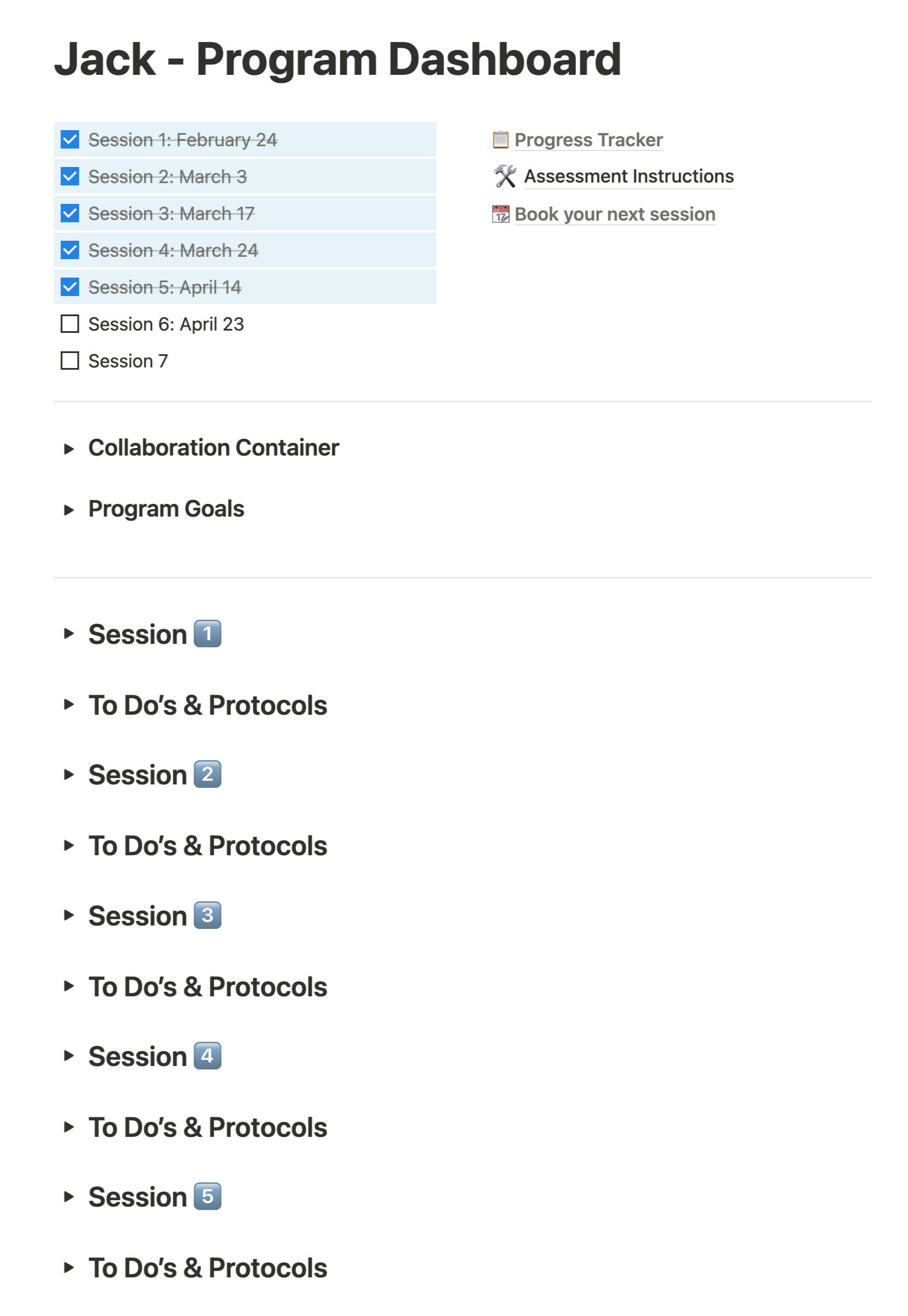 1. Coaching / Check-In Sessions